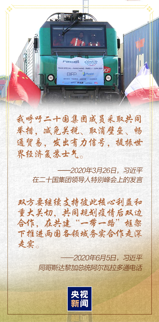 “中歐兩大經(jīng)濟體應(yīng)該發(fā)揮世界經(jīng)濟‘雙引擎’作用,拉動世界經(jīng)濟復(fù)蘇,共同支持科學(xué)有序復(fù)工復(fù)產(chǎn),加強宏觀經(jīng)濟政策協(xié)調(diào),維護全球產(chǎn)業(yè)鏈供應(yīng)鏈穩(wěn)定通暢?!?6月22日晚,視頻會見歐洲理事會主席米歇爾和歐盟委員會主席馮德萊恩時,習(xí)近平主席的表態(tài)為面臨下行壓力的世界經(jīng)濟注入信心。